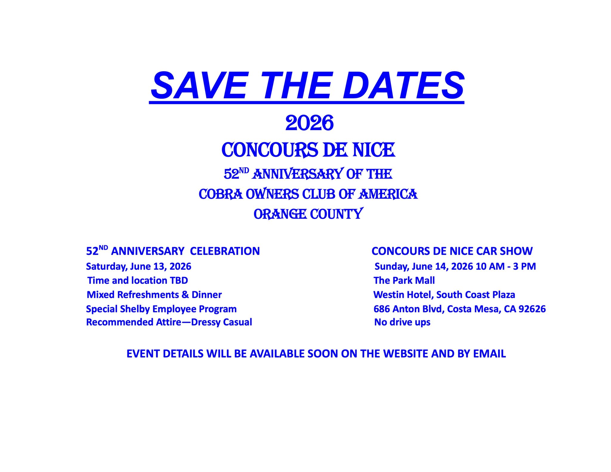 Concours Dinner Reception 2026 List View Event Details Saturday, June 13, 2026 All Day Contact Person Bill Nelson smracerbill@gmail.com 6198578487 Please click here for a printable flyer.